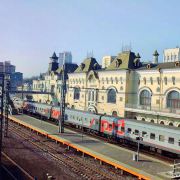 海参崴火车站是西伯利亚铁路的东端终点,与其说是火车站,不如说是一种象征。站台上有9288字样的双头鹰雕塑,表明从这到莫斯科的距离是9288公里。而整体极具俄罗斯风格的外观也让人联想起17世纪俄罗斯建筑艺术的代表作品,给人以复杂多变的视觉美感。