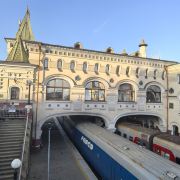 该火车站外观精美古朴,充满贵族气息。主入口采用三联拱门形式,屋内为冰刀状屋顶,有许多小帐篷顶点缀其中。