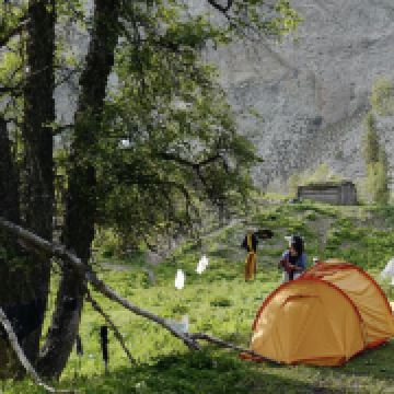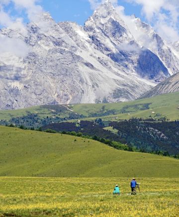 河,有小溪也有湍急的河流,科克苏河需要借助溜索过