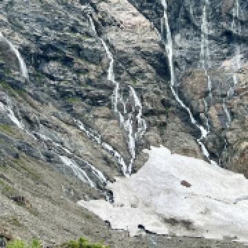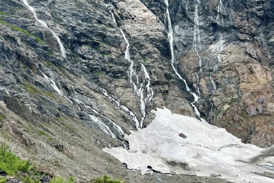 艹白:乌孙古道横跨天山山脉,站在山脊上,我们能看见天山洁白的雪。乌孙古道夏秋季有时也会下雪