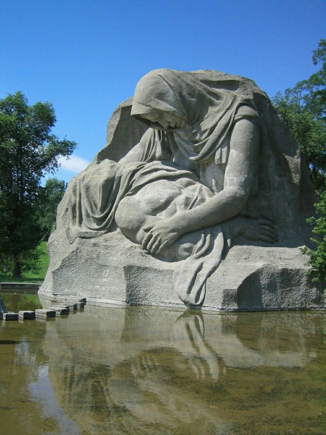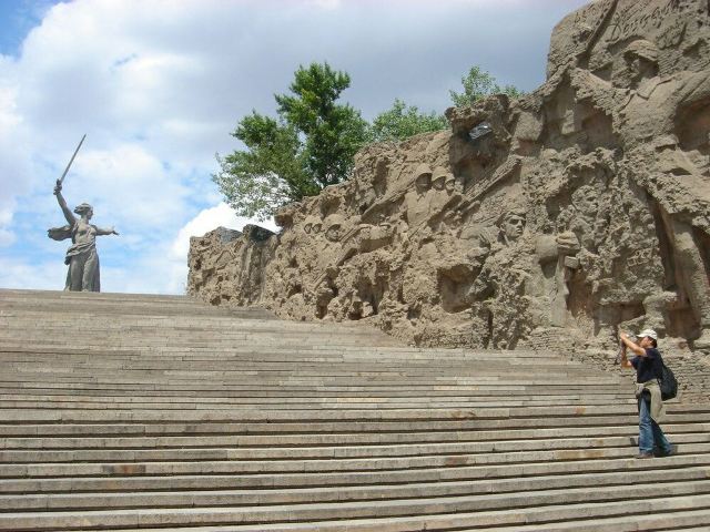 知名的马马耶夫岗,曾经是一个打斗激烈的战场,在这片高地上,有一个手持宝剑的雕像,这座雕像是世界第三雕像,重约8000吨,在雕像下面是阵亡者纪念馆。