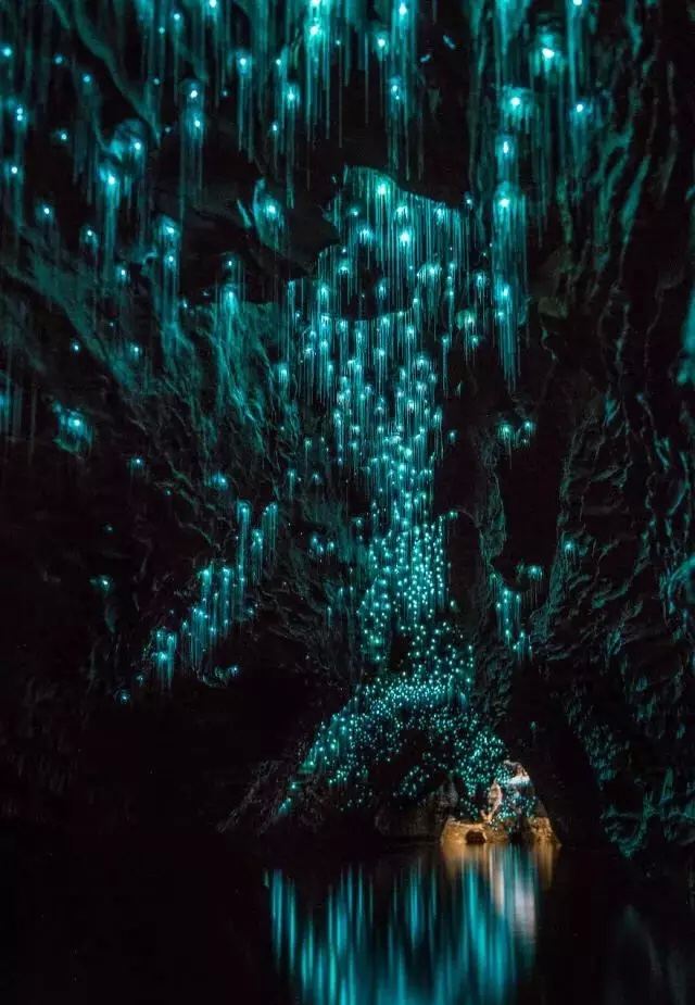 怀托摩萤火虫洞是新西兰北岛西部山区的石灰岩溶洞,也是新西兰的景区。毛利语中怀托摩是绿水环绕的意思。洞壁上,星罗棋布的绿色光点层层叠叠,这些绿光闪烁在黢黑水面上,光影翻倍,这是一个属于绿色精灵的奇妙世界。