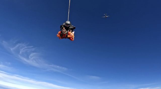 在专业工作人员的帮助下穿戴好跳伞装备,就可以坐飞机出发了,随行教练及跟拍摄影师会敬业地为你减压。抵达既定高度后你便能体验跳伞了,你需要做的就是和随行教练一起纵身一跃。在自由落体的过程中身体不能弯,要成弓形才能保持平稳,而双手要张开。高空中风力很大,你能感觉到脸颊被风吹得鼓动起来,十分刺激。