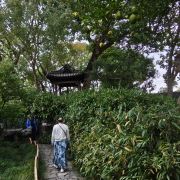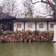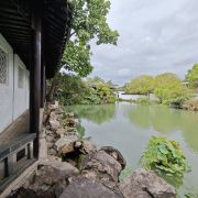 北宋文人苏舜钦被贬后建造了沧浪亭,园名取自楚辞《渔父》“沧浪之水清兮,可以濯吾缨;沧浪之水浊兮,可以濯吾足”之意。园林的大门在西北角,未进园便见园外一池绿水,过桥,进园。园中央是大片假山,山顶有亭子——沧浪亭,其他建筑都环绕着假山。入园后有御碑亭,里面陈列着和沧浪亭相关的史料,可以先去了解下,再游览的时候就不会一头雾水只是“到此一游”了。然后先别去左边的假山,走右边的路,逆时针绕园一周,再去山顶是沧浪亭的假山,这样的游览路线比较合理。