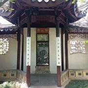假山东南有园中大的建筑,主厅明道堂,是以前文人讲学的地方。墙上悬有三块宋碑石刻拓片。