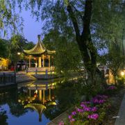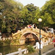 伴着山塘街的香溪和伍子胥率众开挖的人工运河胥江在东部的古桥斜桥下相汇,坐游船在充满历史故事的河道上晃晃悠悠,再听船娘用吴侬软语唱一曲也很不错,游船码头离山塘街西端的游客中心不远,船费10元,3人起航。