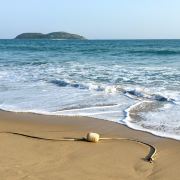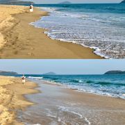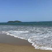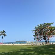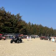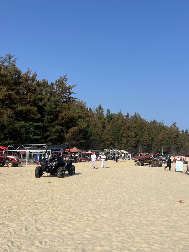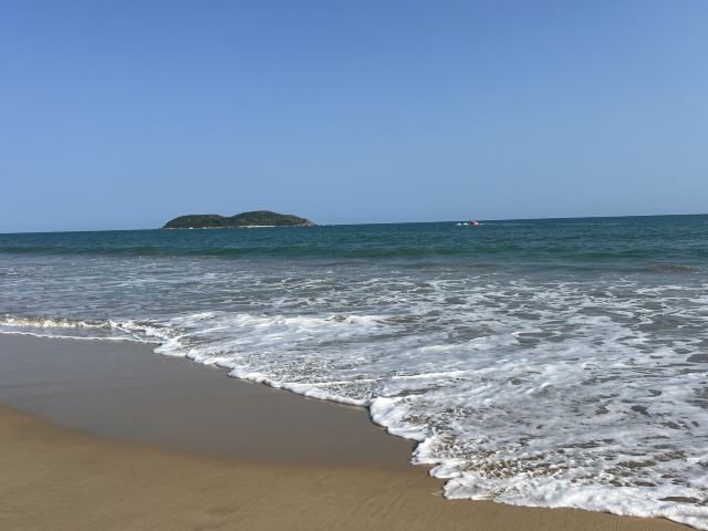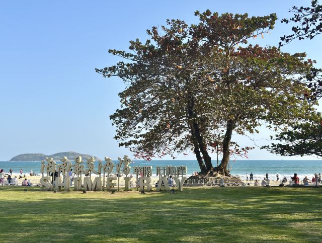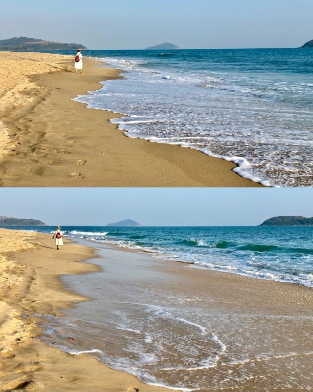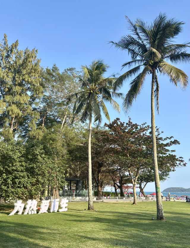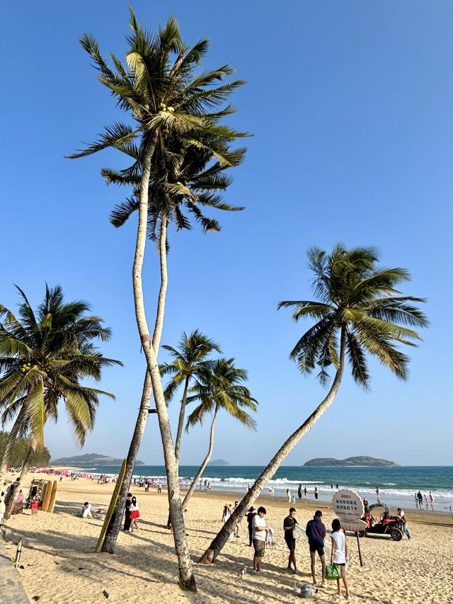 拥有约6公里银白沙滩,由两个新月形海湾组成,背靠全球罕见的千年滨海青皮林,对面是无人岛加井岛(《非诚勿扰2》取景地,潜水胜地)。