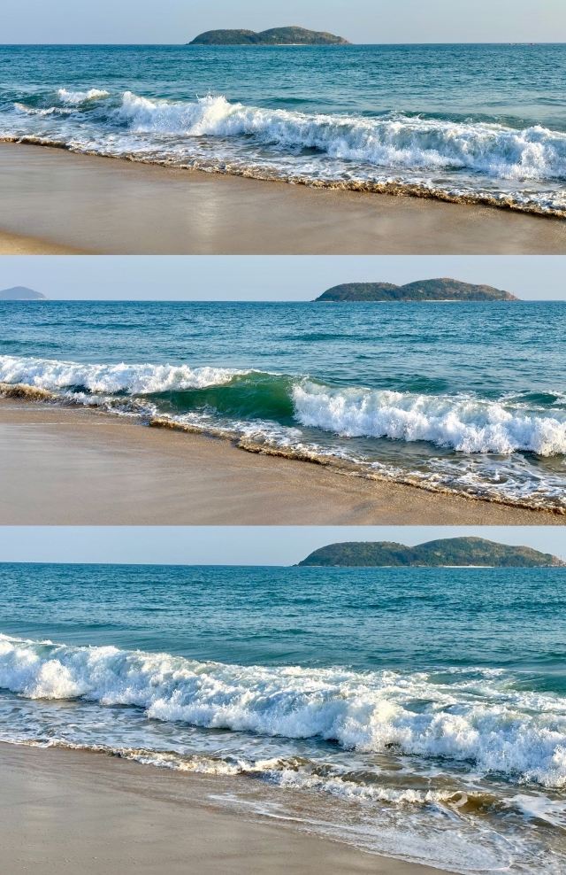 很少有人从这里走到威斯汀,但正是这一段才是石梅湾最美的景色,又长又宽的沙滩上,几乎没有什么人,海水特别的蓝,海浪象一层层的雪花,不停地向海边涌来,回头望去,夕阳已逐渐西沉,海面一片金黄。