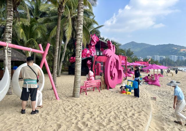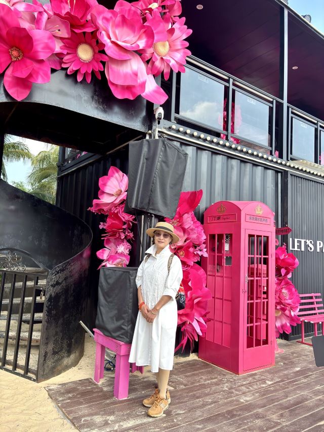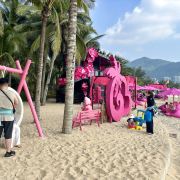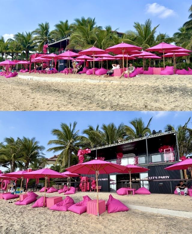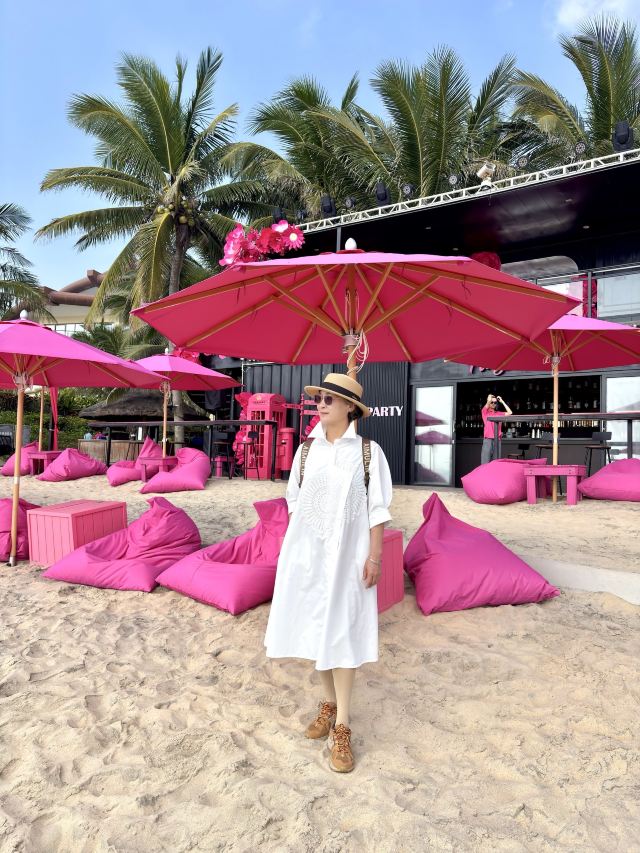 入住威斯汀后,才发现,原来这个“粉红吧”就在威斯汀酒店东侧的沙滩上,是酒店新开或者新装修的一个“网红”酒吧,名字叫“汀潮”,现在已然成为了石梅湾的一个景点。
