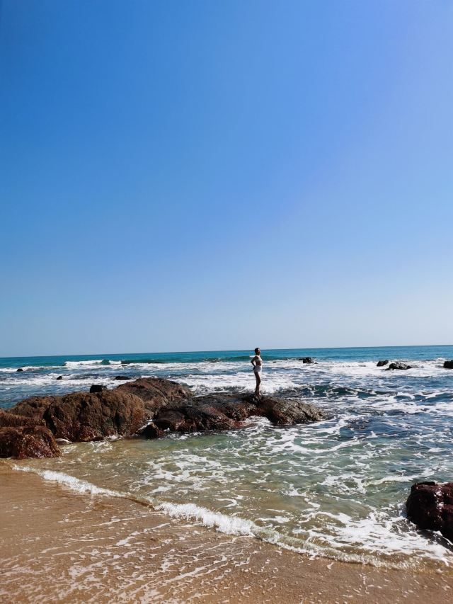 除了冲浪,日月湾的景色也美得令人陶醉。湛蓝如宝石般的天空,清澈见底的海水,细腻柔软的沙滩,随风摇曳的椰林,还有那被称为“海南最美公路”的滨海公路,一边是白沙碧海蓝天,一边是椰林树影,自驾其中,仿佛驶入了一幅绝美的大自然风景画,随便一拍都是大片。