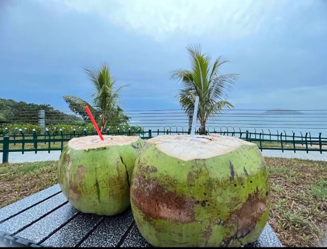吃的方面,其实日月湾这边也是有很多的,我记得,然后晚上的话宁静就有很多夜市出来很多的那种小吃海鲜之类的就自己选择吧,我觉得还是还有还有就是嗲嗲的椰子鸡在这边,我觉得还是蛮不错的,我是第一次去海口的时候呢,我觉得我在这边是能够吃的习惯的