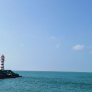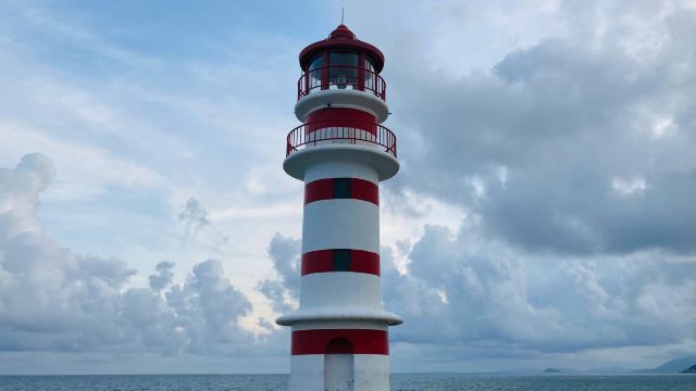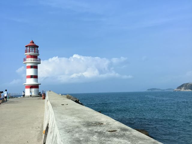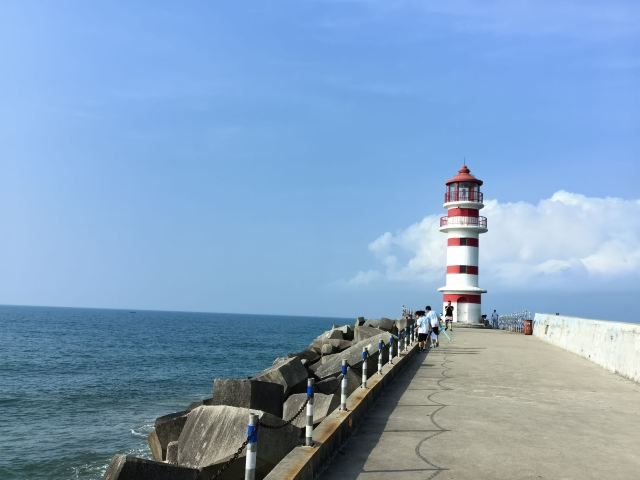 神州半岛旅游区-灯塔位于万宁市,这座灯塔不仅是海港的守望者,还成为了地标性景点。沿着深入海中的护堤走进去就来到了灯塔脚下。在碧蓝大海的映衬下,红白相间的灯塔格外清新。傍晚时分,在晚霞和海水的映衬下,多彩梦幻的画面便呈现在眼前,让人沉浸在一眼天涯的浪漫中。