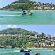 沿着长堤一路慢慢向灯塔走去,两侧的景色十分秀美迷人,一边是一个个的小山包和小岛屿,上面一片片的海景别墅和度假酒店,另一边就是神州半岛最美丽的一片沙滩,弧线很长,一直延伸到喜来顿酒店和落日吧那里,如果体力允许,很值得走上一走。