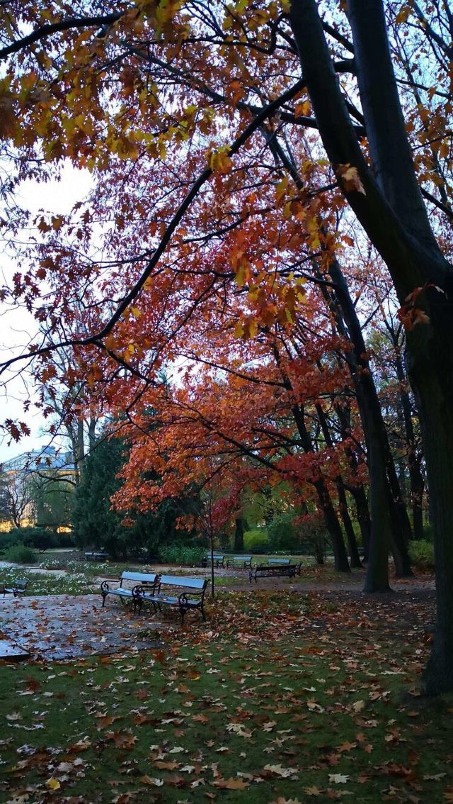深秋时节,去波兰华沙“肖邦公园”游览。走进公园漫步林荫道,两旁的树木换上了秋日彩衣,枫叶如火,梧桐叶金黄,色彩斑斓,层林尽染,秋景美如画。
