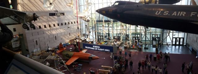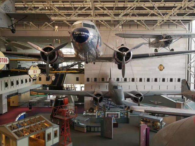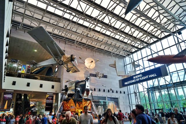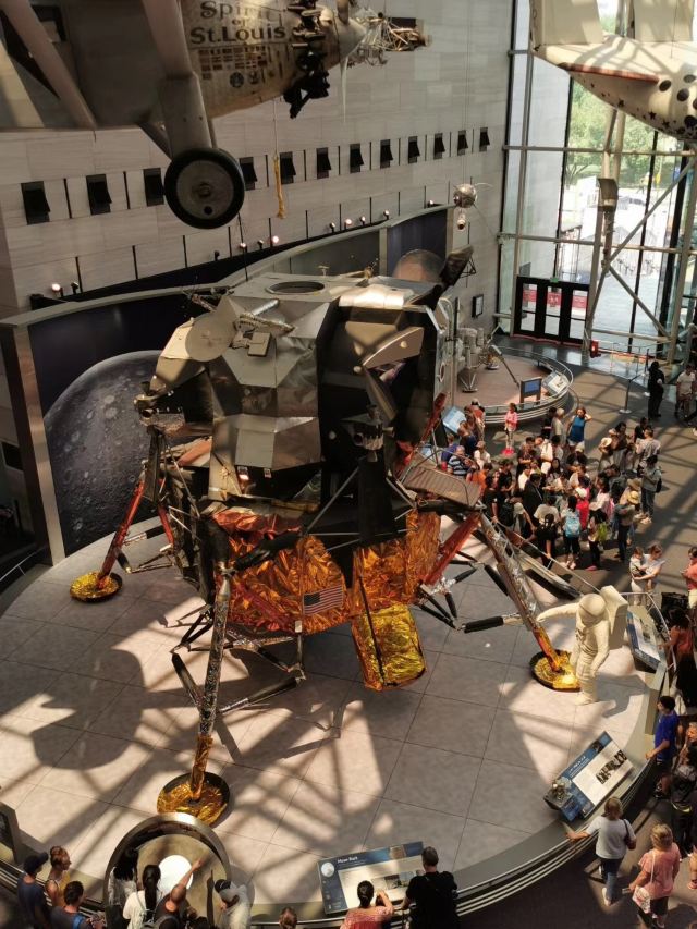 美国国家航空航天博物馆就坐落于国家广场南侧,隶属史密森尼学会,展馆占据了整整三个街区,24个展厅汇集了大量具有里程碑意义的飞行器、太空探测器等,同时也是研究航空航天、行星科学、地球科学的历史和科学研究中心。