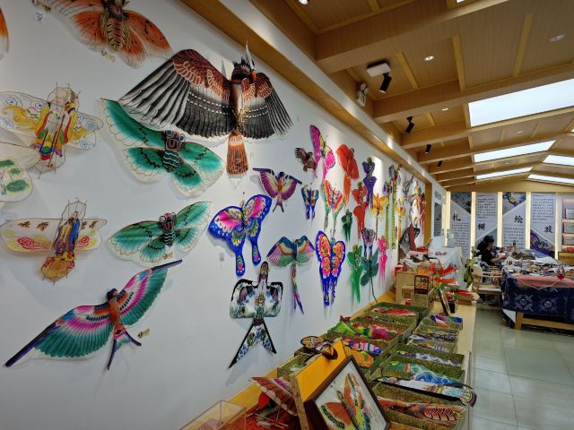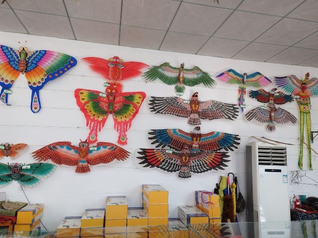 杨家埠风筝,内容祥瑞吉利、有鸟、兽、鱼、虫风筝,有版式、硬翅风筝,有串式、软翅风筝,杨家埠人制作的350米龙头蜈蚣风筝,是较为大型的风筝之一,戏曲人物,无不栩栩如生,年年有余、招 财进宝、榴开白子更是反映了劳动人们的欣欣向往和对美好生活的追求和期盼。