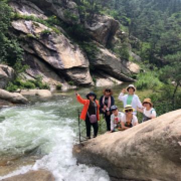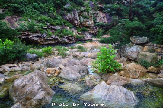 昆嵛山无染寺景区森林茂密,松柏苍翠,峰峦叠嶂,怪石密布,有摄人心魂的万米大峡谷,上下分布着千姿百态的、五颜六色的十八潭,沟谷曲折幽长,溪水、瀑布、清泉连在一起。碧水盈盈,清波荡漾,水花四溅,使游人乐而忘返。人称"江北小九寨"。
