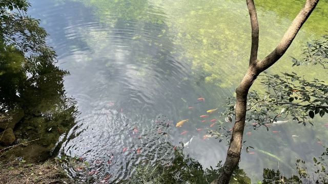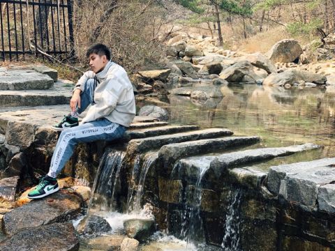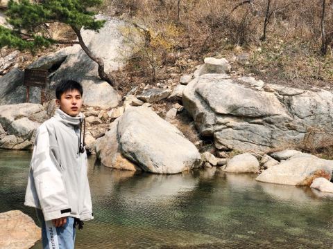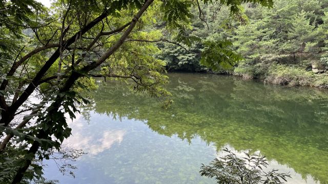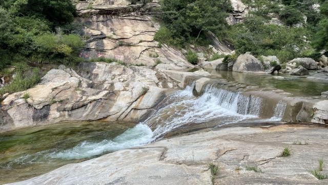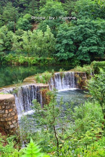 今天无染寺的水真是太多太美了,步行道两侧群山环绕,泉水从高处涌奔而下,你可以闲坐于错落有致的怪石上看山、看水,看风景,今天非周末,但是游人也不少,许多单位来此进行红色教育,顺便观水之灵气。