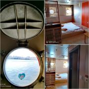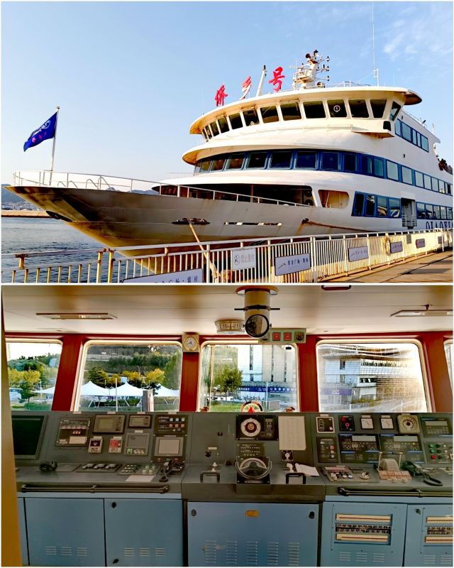 2、开船前半小时便可登船,时间宽裕的话建议尽早登船,以便提前参观船内设施和构造,开船后便没时间闲逛了。登上船所在的1楼内部是餐厅区域,都是包间。走到尽头一直上楼梯到头竟然是驾驶室,里面有人说话我就在外面拍了拍照;负1楼是客舱;负2楼不常用,像是员工住处。