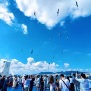 1、“侨乡号”游轮斥资5000万打造,侨乡码头紧挨着刘公岛码头,公交直达但要走890多米的路,开车也很好停车。现下每天4趟班次,开船时间分别是9:00、10:30、15:30和17:00,航行时间1小时,建议乘坐17:00的班次,可以看到红彤彤的落霞与海鸥齐飞的美景。158元票价里包含游轮船票(反面是观光巴士票,需提前一天预约)、咖啡券和星光甲板(在顶层还可再上一层的VIP观光平台)参观票。
