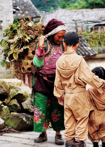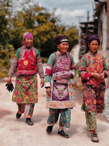 我看到老辈人保留着传统的服装风格元素