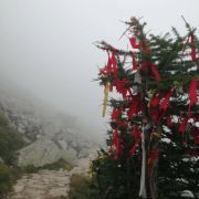 位于渭源县城西南25公里的杨庄乡,因传说是太白金星修道的仙山而得名。山形险绝,酷似华山,俗称“小华山”。太白山一峰独耸,系云摩天,众山环拱,与露骨山遥相呼应。山势“海拔三千三,离天三尺三,不知路多远,八十一转湾”。 游人来至山前,往往先到接引殿,以请接引菩萨“通报”玉皇大帝及各路神仙,再沿右侧的大干沟或左侧的小干沟拾级登山。干沟并不干,沿沟到处溪流淙淙。从山下仰望,殿宇呈瑞,茂林修竹,悬崖峭壁上飞濂挂瀑。太白山在渭源县城西南25公里的会川镇,海拔3300米。因山势险峻酷似华山,有人称它为小华山。传说是太白金星修道的仙山。山顶穿云摩天,郁郁葱葱。从山顶向下俯瞰,只见云海翻腾,众山环拱,使人大有“会当凌绝顶,一览众山小”的感觉。山上唐代已有庙宇,清道光年间又重建。原建筑毁于60年代,现在乡民又建有太白殿、三清殿、三霄殿、雪山太子殿、玉皇阁、雷祖殿、山神庙等。每年农历六月初六,山上举行庙会,热闹非凡。