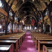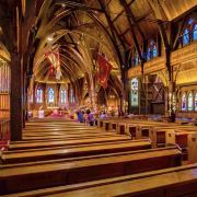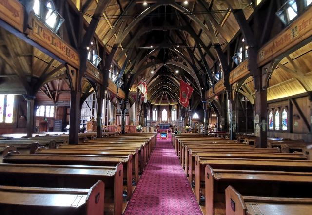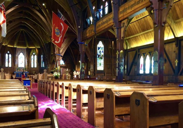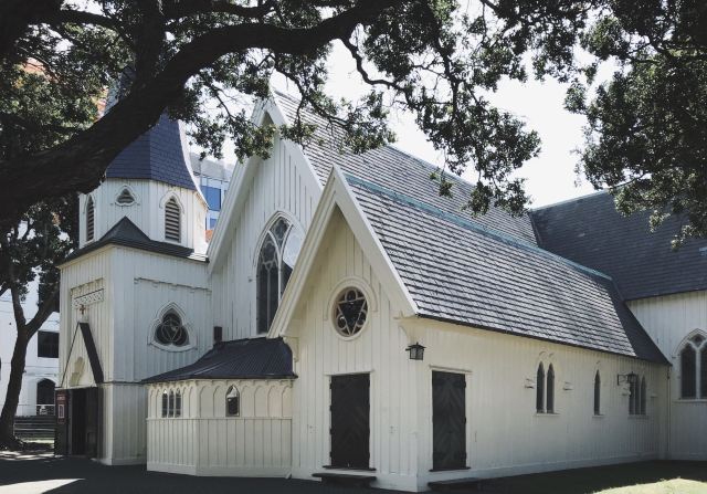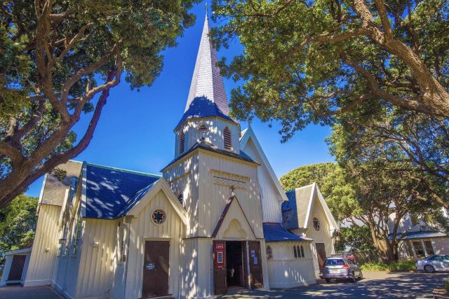 5分 超棒旧圣保罗教堂是新西兰最重要的历史遗产之一。这是一个神圣的建筑,最早是在1866年奠基,仿英国早期的歌德式建筑,全部使用新西兰木材建成。这是一个古老的教堂,彩色玻璃上的人物都是教区居民和圣经上的故事。 特别好奇的是在教堂内悬挂着好几面旗子,有英国皇家海军的旗子,二次大战驻扎在惠灵顿的美国海军陆战队的军旗和美国国旗,工作人员解说,这是有故事的军旗,挂在教堂,人们不会忘记他们,上帝保佑和祝福他们。这个教堂现在主要被租用于婚礼,音乐会,纪念活动,或者葬礼。
