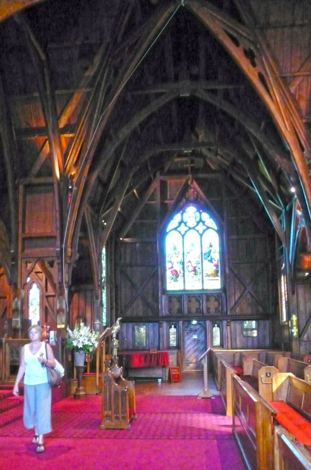 该教堂是典型的19世纪哥特复兴式建筑,无论从建筑材质还是风格上都很符合当时的殖民背景。建筑物虽不大,但其拱形的廊柱、祭坛、彩色玻璃都给人单纯而质朴的美感,有一种独特的气氛。教堂设有巨大的彩色玻璃窗,阳光从透过玻璃照进市内,显得教堂内部看上去异常神秘。教堂的屋顶设计很像被翻转过来的伊丽莎白女王大型帆船的船体。教堂的中央部分有许多旗帜,这些旗帜包括有新西兰商船(New Zealand Merchant Navy)、英国皇家海军(Royal Navy)和美国海军陆战队第二分区(second division of the United States Marine Corps)的旗子,这些都是在第二次世界大战爆发后送过来的。