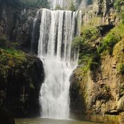 百丈飞瀑位于浙江省绍兴市嵊州市王院乡王院村南1里处的百丈岩,距嵊州市区40公里。瀑布深藏于崇山峻岭中,是一处鲜为人知的秘境。景区内山高峰险,植被茂密,常年飞流直泻。百丈峡谷中飞出九条瀑布,气势磅礴,蔚为壮观。明代知名史学家张岱赞曰:银河坠半空,摇曳成云雾,万斛喷珠玑,百丈悬练素。故被誉为江南的第一瀑布群。