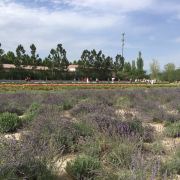 七彩花田的东侧背后则是大面积的紫色薰衣草田,这里也是霍城拍摄薰衣草好地点之一。每年6-7月,成片的薰衣草开放,仿佛一片紫色的海洋,可以尽情的观赏。