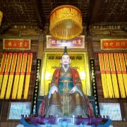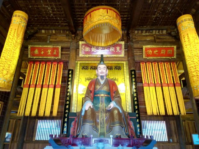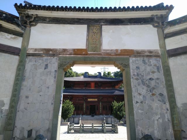东瓯王庙位于温州市市区华盖山西麓,现存建筑为后期重建,恢复了原有照壁、月光池、厢廊、东瓯王大殿及配殿、东瓯王塑像的设计布局。其中,主、副殿均采用木头架构,而屋顶则采用琉璃瓦,并建有代表蚩尤的双角,远远望去,整个庙宇显得大气恢弘,透出帝王之气。