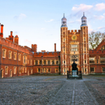 伊顿公学坐落在伦敦20英里的温莎镇一桥之隔的伊顿镇内,是英国最著名的贵族中学。地处白金汉郡的泰晤士河畔,与女王钟爱的温莎宫隔岸相望,伊顿公学是一座古老的学府,由亨利六世于1440年创办。伊顿以“精英摇篮”、“绅士文化”闻名世界,也素以军事化的严格管理著称,学生成绩大都十分优异,被公认是英国最好的中学,是英国王室、政界经济界精英的培训之地。