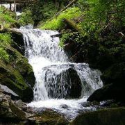 画,无不令人惬意。一条巨大的水流,穿云破雾从半空飞泻百米而下,水花撞击到峭壁上,雾霭腾腾,似舞出一条顶天立地的巨龙,于是得名“黑龙瀑”。大峡谷内的凤尾瀑布群从上至下迂回曲折,有天凤、雏凤、玉凤、巧