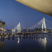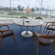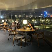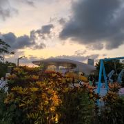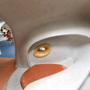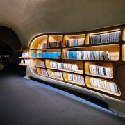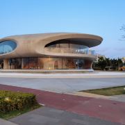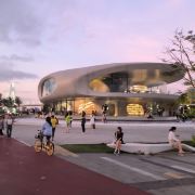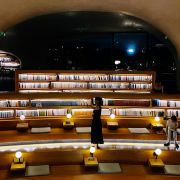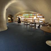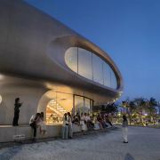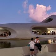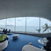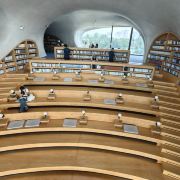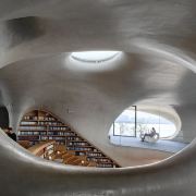 海口云洞图书馆紧邻大海,总面积约七百多平方米,图书馆藏书种类丰富,里面还设有阅读区、露台和咖啡厅。
