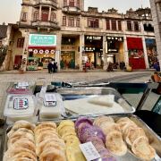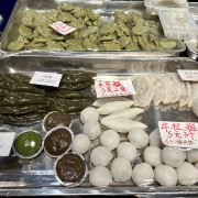 骑楼炸野:炸的菜品就是普通的菜品,丸子、年糕、豆腐、肠之类的,口味上也说不上好吃,但可以试试,因为蘸料和我们湖南的不一样,这边是有酸辣椒,黄豆酱,甜辣酱,自己喜欢吃什么加什么,总得来说比较清淡,油沥的比较干所以不油腻,年糕淋的是炼乳还挺好吃的。