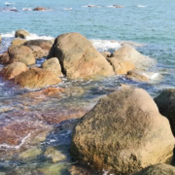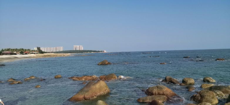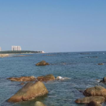吉兆湾湾多而美,石多而奇,一湾一画,一石一景,蓝天、碧海、礁丛、沙滩、树林构成了一道美丽的天然画廊,别具一格。海滩水质纯净,沙质松软洁净,贝壳彩石遍布,细浪绵绵,海面一望无际,水清见底,深浅适中。这里葵树成行、椰影婆娑,极富亚热带海滨风光。