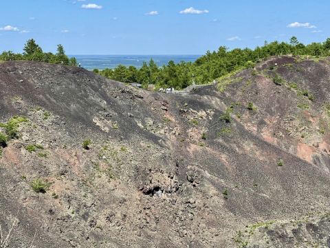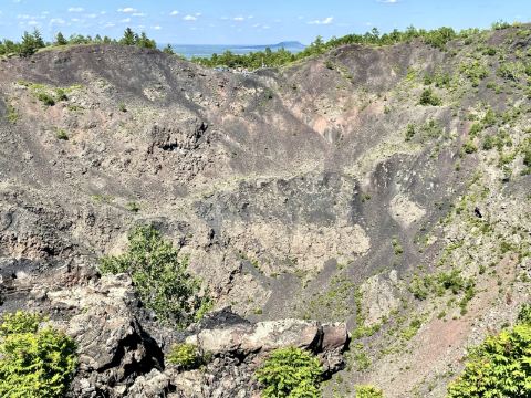5分 超棒火山熔岩地貌很不错,非常有特色。门票75元+25元观光车……这个车必须坐。可以选择水路和陆路进入景区,水路是花100元乘船从三池进入,再从西门出,不走回头路,个人觉得没有必要浪费钱坐船,湖上风景没啥特别,而且观光车会送到各景点。其实只有两个景点(观光车停靠点),坐船先到达的是喷气锥,地貌很特别,在栈道上穿梭看熔岩,火烧山只能远看。然后坐车到达老黑山山脚,建议从右边的栈道走去火山口,沿路景色美,路上遇到松鼠。栈道尾部就是上火山口台阶,年龄大的不好走,可以沿路返回。到达火山口,其实没啥特别喜欢,就是一个深坑。但再往前的观景台能看到五大连池和几个火山的全貌,景色不错。然后沿着洗手间旁的路下山,直接回到乘车点,再坐车到西门离开。当地人介绍这里夏季最美。西门门口可以免费停车