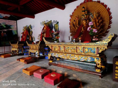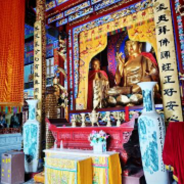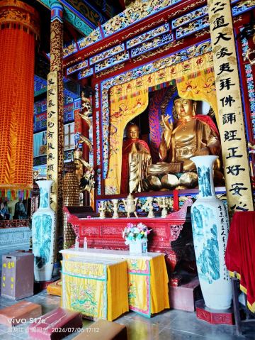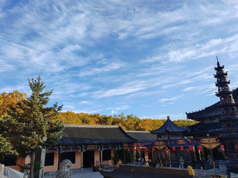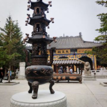 3、药泉山:14山之一,山不大,山门是3洞牌坊,山上景观只有1座钟灵禅寺,由云游至此的法轮寺经一大和尚始建于民国六年(1917年),耗时11年建成,后在民国二十年(1931年)、三十二年(1943年)分别被特大风暴和日军摧毁,日军还用寺中铜像铸造子弹,后重建,建筑面积1.87万㎡,入庙免费,寺内有天王殿、钟楼/鼓楼、祖师殿、客堂、十方堂、大雄宝殿(主殿)、迦蓝殿、库房、观音殿、药师殿、法堂、心灯亭/般若亭、月身殿、弥陀殿、地藏殿、威悟堂、斋堂、南海观音像(寺外的高台上,面向整个城市)