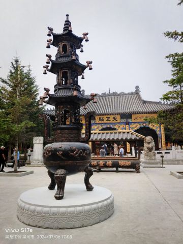 药泉山位于中国黑龙江省五大连池市,是五大连池火山群中很小、海拔很低的一座火山,海拔355.8米,因山下分布有多处富含矿物质的冷矿泉而得名,被誉为“圣水”,可饮可浴,对多种病症有辅助作用。药泉山的火山口形状独特,呈明式圈椅状,火口底部平坦,山坡上生长着茂密的柞桦林,景色宜人。山顶建有钟灵禅寺大雄宝殿-钟灵禅寺,是一座典型的禅宗寺院,寺庙香火旺盛,成为北疆地区重要的活动中心之一。游客可以沿着石阶登上山顶,沿途欣赏自然风光,感受宁静的禅意。此外,药泉山植被茂密,以漏芦为代表花卉,山坡上保留着原始火山熔岩地貌,形成独特的“石海”景观。药泉山集地质奇观、宗教文化与康养旅游于一体,是五大连池风景区的核心景点之一。