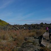 黑龙山也叫“老黑山(火山)景区”,位于景区西部,满山都是黑色的浮石。它是14座火山中较高的一座,200年前喷发过一次。山顶是巨大的火山口,爬上山顶后可沿着步道俯视景象森然的内壁,也可远眺湖水和其余的火山锥。该景区内需乘坐电瓶车,除此之外还会带游客去近观附近的另一座火山“火烧山”。