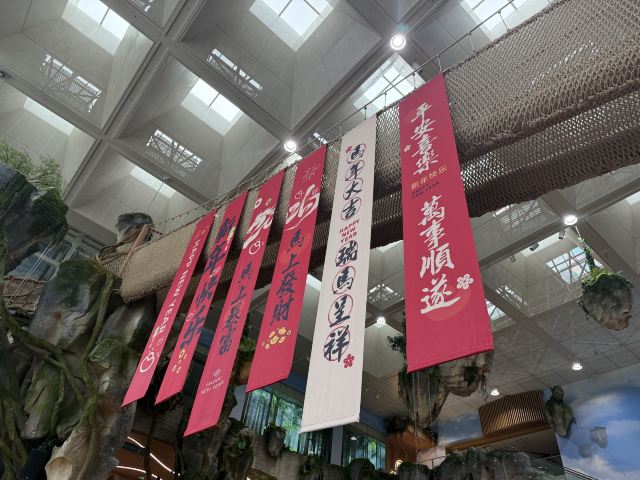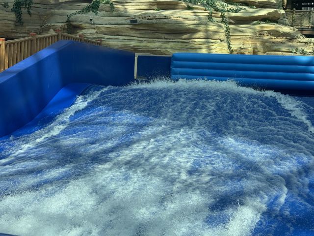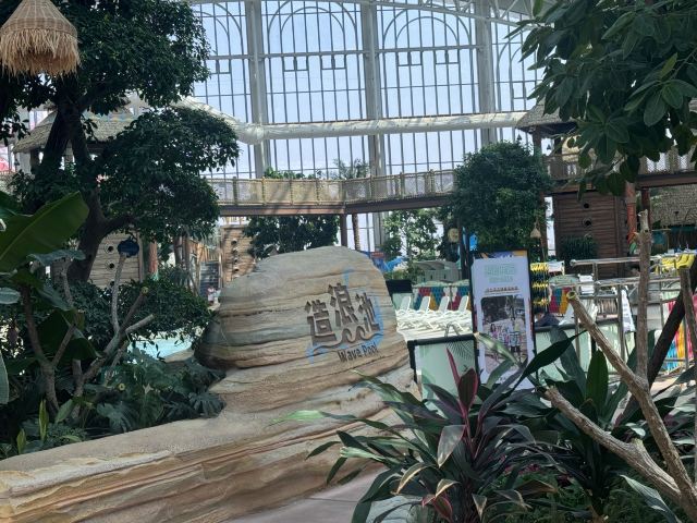 室内水乐园四季恒温,遍布热带自然植被,茅草屋、椰子树、人造冲浪池,顺流乘风破浪的途中,也能顺带穿越热带雨林秘境。