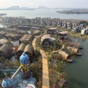 国内第一棵人造榕树树屋在后官湖畔扎根,穿过曲径通幽的小庭院来到房内观景平台,视线所及之处,芳草萋萋碧连天。585间客房,更有90间特色船屋、树屋临湖而栖,拥抱自然。
