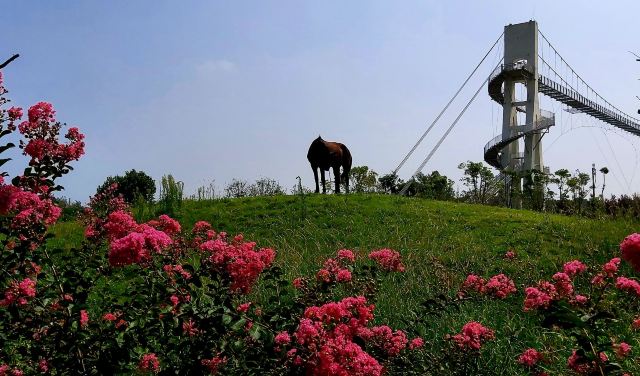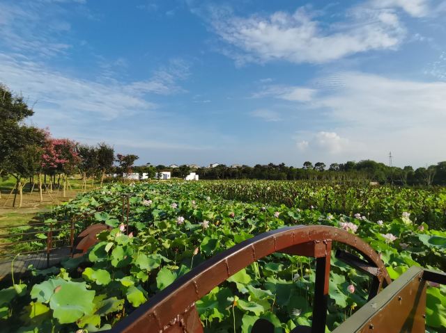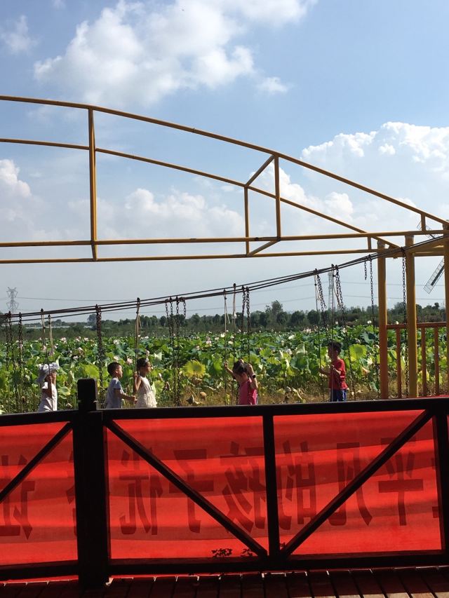 5分 超棒紫薇都市田园在新洲区,从武汉过去一个小时左右,景区前面路上稍微有点修路。景区停车场很大,免费停车,提前预约的凭手机短信就可以进入景区。紫薇都市田园面积大,游乐设施很多,小火车,玻璃桥不要错过,网红吊桥最有人气。现在这个季节还可以看看荷花,紫薇也还有,挺好。