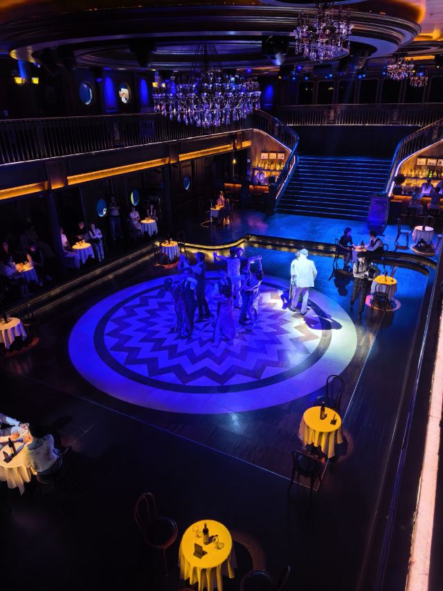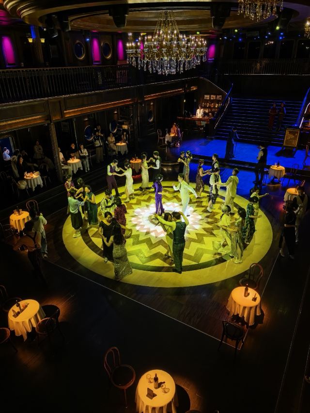 舞厅里乐声一起,演员们邀请你共舞,眼神和肢体全是故事;酒吧里那位“大哥”讲起往事,我差点听哭;最绝的是二楼客舱,推开一扇扇门,每间房里都在上演不同的人生片段——有离别、有重逢、有少女的心事、有船长的独白。你可以站在门外静静看,也可以走进去坐在床头翻翻旧信,那种沉浸感是普通舞台剧给不了的。