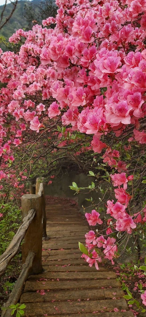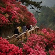 武汉云雾山每逢春夏之交,云雾山杜鹃花红白相间,漫山遍野竞相开放,似绮丽的彩带飘动在青山幽谷之中,又如烂漫的花海,热烈动人,堪称华中一绝。