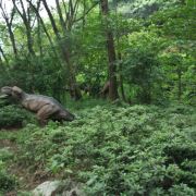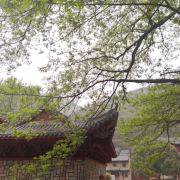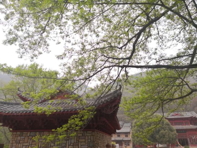 出了溪谷,前边出现一座寺庙,这就是竹林寺。坐落于云雾山西麓尖刀山下的幽谷之中。寺院依山就势,布局恢宏,殿宇峥嵘,亭阁耸立。寺周围奇竹环抱,传说这四季常青的矮竹原是观音身上的紫纱变成。