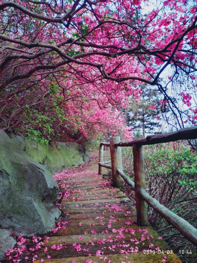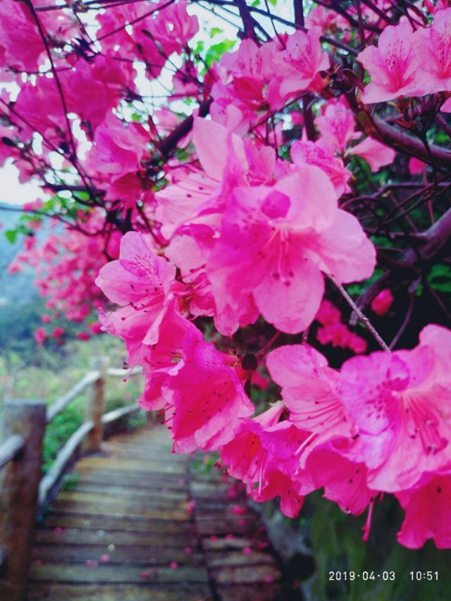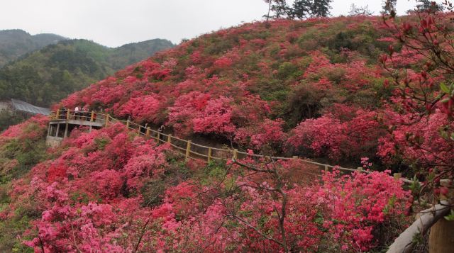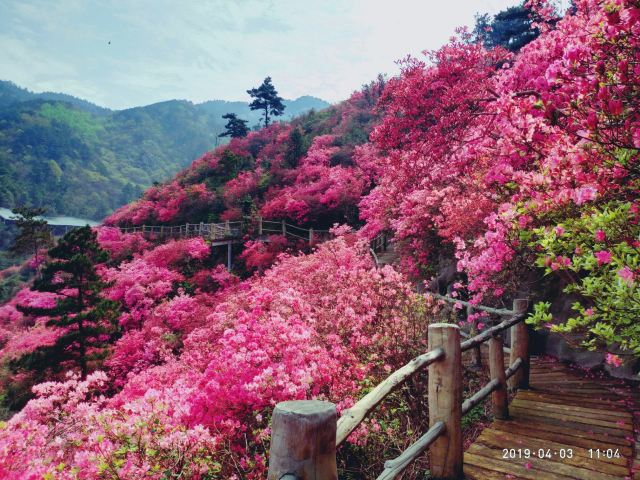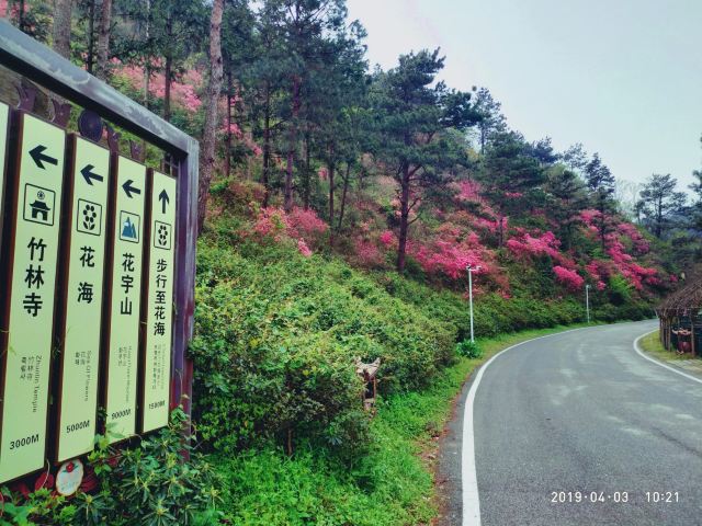 5分 超棒杜娟花半开半盛,很夺目!美得想尖叫!四月去就是全盛期!有五六个停车场,要早点去,不塞车,而且可以停在里面的停车场,走路的路程短一点。三个景点的观光车,门口到竹林寺到花海到花宇山,每段十元,可以选择先上花宇山,再分段下来,也可以先分段,再从花宇山下来,不要想着走路上去,除非你时间充足又有超人的体力!竹林寺慎入!进去可以免费烧香,磕头后,和尚会监督你投香火钱,投了钱立刻走,不要接受他们的红丝带,拿了红丝带就得听他讲解,可能还要点香油灯,那就没完没了啦!没小孩的直接这三个景点去就足够了,有小孩的可以去恐龙园冰雕馆玩玩。景区内只有小卖部,最好自带干粮。