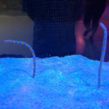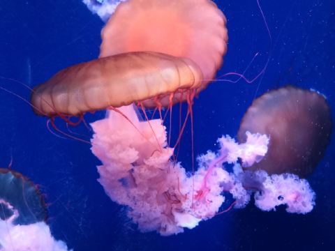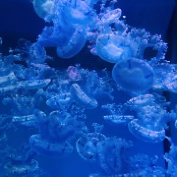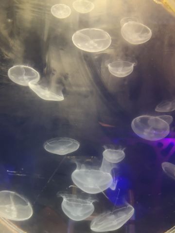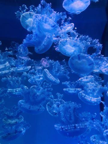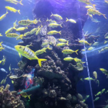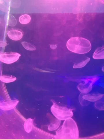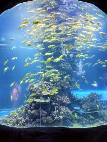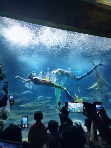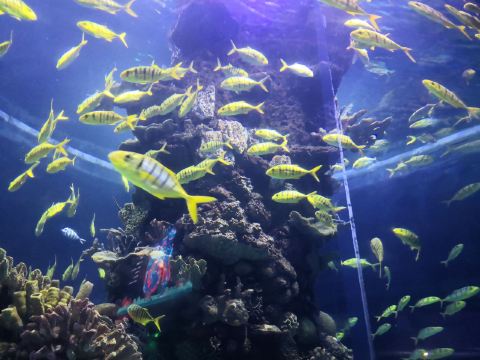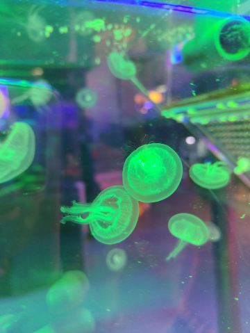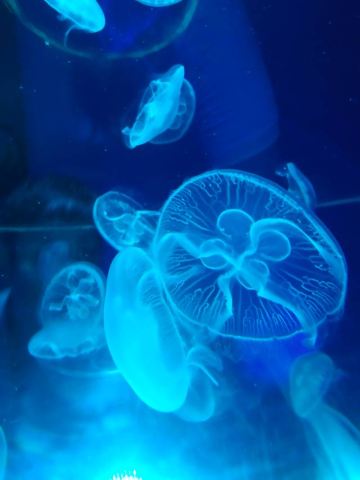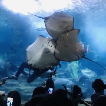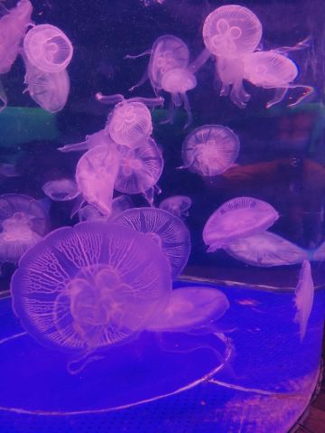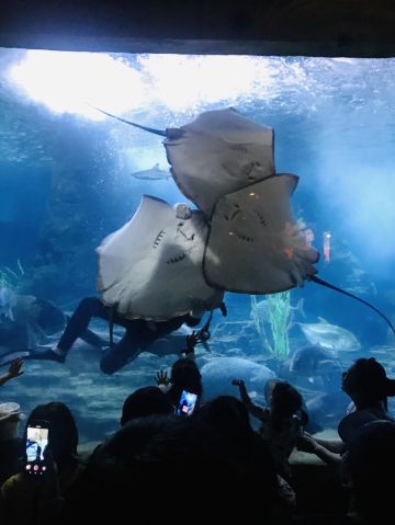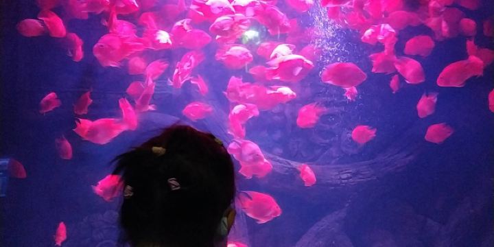 5分 超棒带着三岁的娃牵着滑板车坐地铁去的。在梨园下,没走多久就到大门口了。滑板车不能进去,寄存了。从大门口到海洋世界有一段路,没有树荫,比较晒。幸亏带帽子了。看到好像有租溜娃神器的,带小遮阳伞。到海洋世界门口时大概是四点钟,没有人排队,直接贴一下预约的二维码就进去了。里面开空调了,凉爽。有大大小小的鱼,美丽的水母,摇曳的珊瑚,还有虾蟹、乌龟、黑天鹅等。四点美人鱼表演,四点半海豹表演,观看的人都比较多。整个展馆并不大,带娃溜了两圈。在里面买了一个绿豆味的雪糕,四块钱。出来时娃看到了小火车,坐到大门口花了二十元。娃玩得很开心,回去的路上睡着了。万分感谢八号线换乘二号线时遇到的那位美女。当时我一手抱着睡着的娃,一手牵着滑板车。那位美女从后面拍了拍我的肩膀,说我帮你拿车吧。太感谢啦