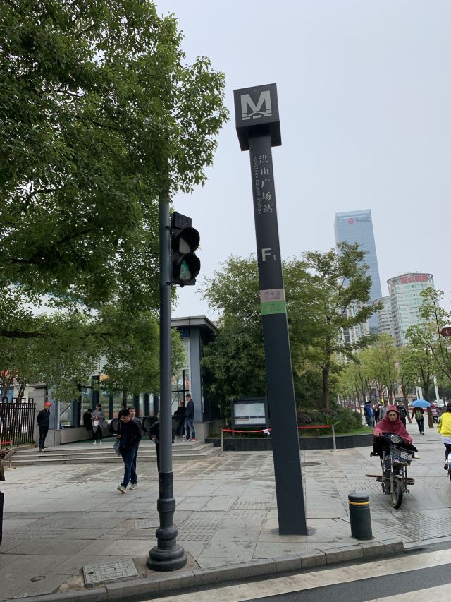 4分 满意洪山广场是武汉最大的城市广场,其整体非常大。其地上有个洪山广场地铁站。是地铁2号线和4号线的交汇站。地下有三层:地下一层为站厅层,地下二与三层为站台层。可以这里交通非常方便的。这里周边各种机关、银行、商场、文化广场、学校等等,这里是非常招商繁华的。还有一个综合性的体育场馆——洪山体育馆。晚上灯光起来的时候,这里还是蛮漂亮的。