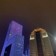5分 超棒夜色下的洪山广场,四周被各色建筑物所包围,在灯光的映射下显现出不同的面貌。洪山宾馆和中北路、科技大厦、保利大厦,是不是各有各的韵味?!